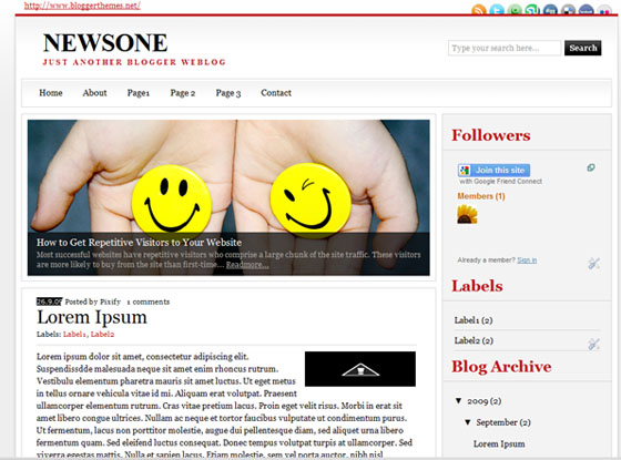 Newsone Blog Template For Blogger – If you’re planning on starting a news blog or like the magazine style type themes then you should try out the “Newsone” Blogger template. This is a 2 column theme that also features a “featured headline” section on the homepage.